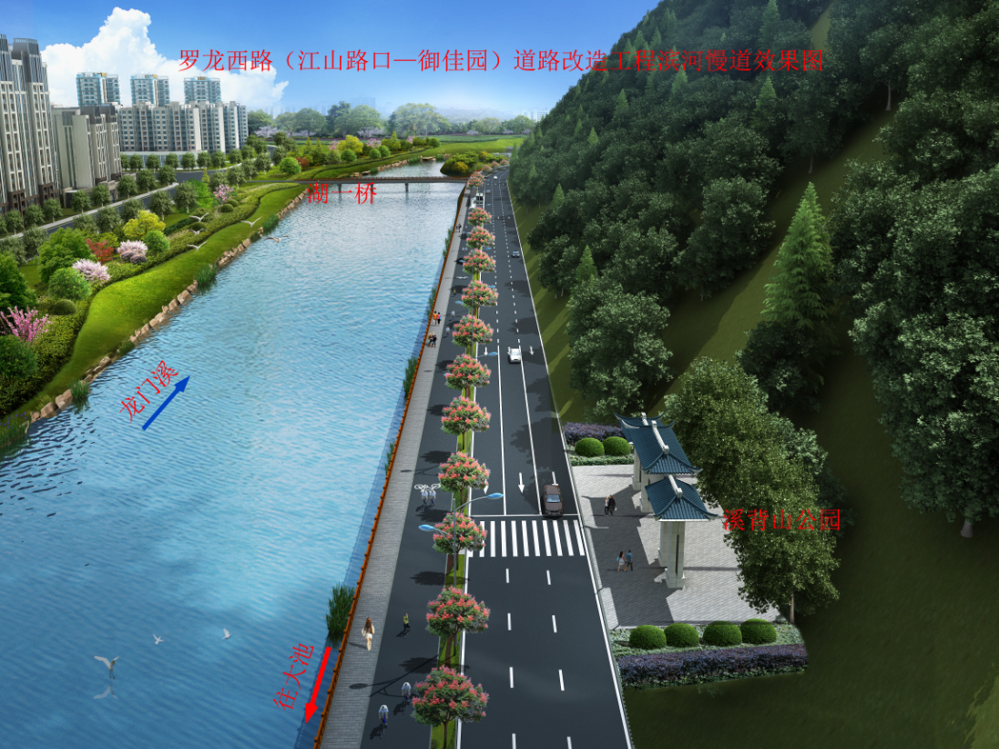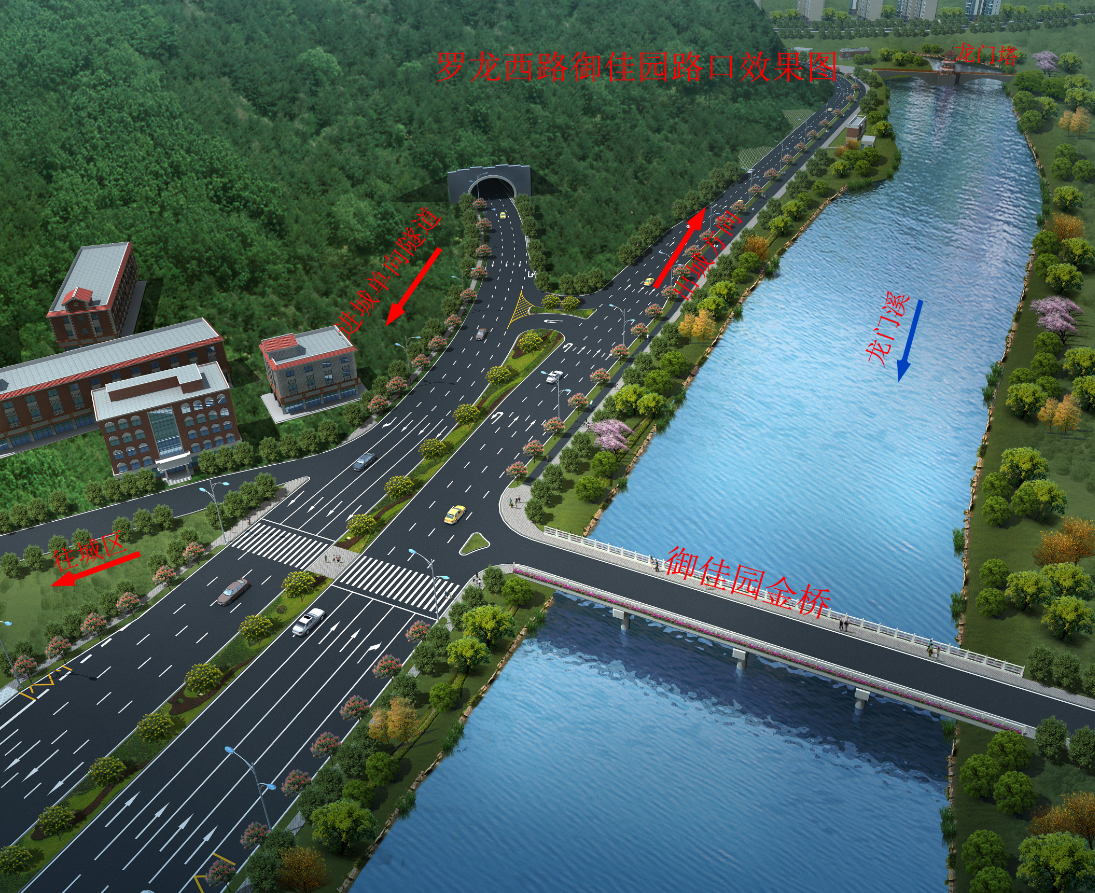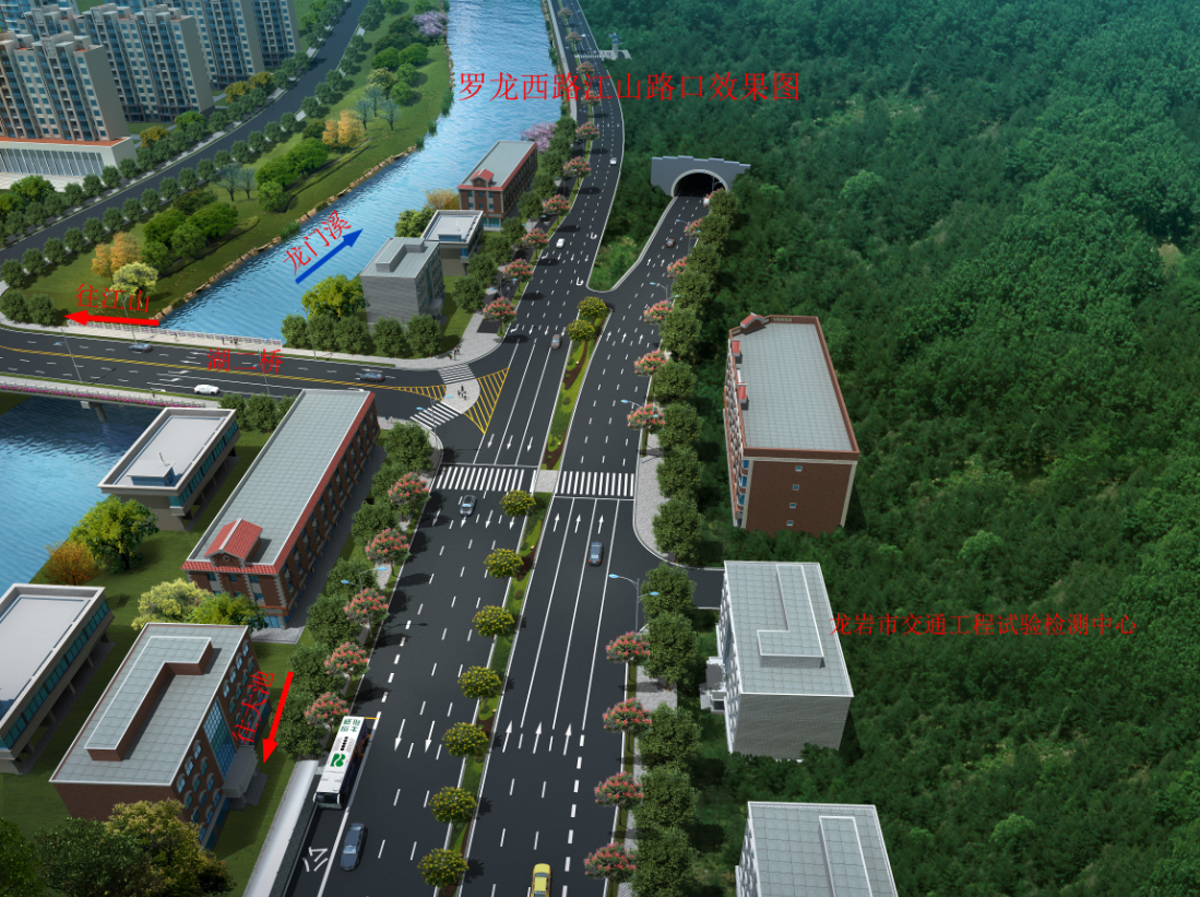 羅龍西路是連接龍巖西高速出入口與中心城市的唯一通道,其規(guī)劃改造范圍從紅竹山橋至御佳園路口,全長(zhǎng)3855米,計(jì)劃將原道路拓寬至40米,實(shí)行雙向六車道,兩旁設(shè)2.5米非機(jī)動(dòng)車道,并在湖二橋路口以東設(shè)640米入城單向三車道隧道連接至御佳園路口,原羅龍西路湖二橋至御佳園段將調(diào)整為出城單向車道。