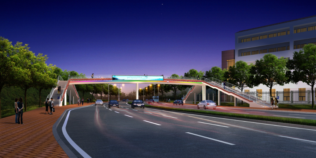 水韻華都人行天橋位于龍騰路水韻華都南側(cè),橫跨龍騰中路。橋長(zhǎng)34.4米,寬3.6米,下部結(jié)構(gòu)采用鉆孔灌注樁和擴(kuò)大基礎(chǔ),上部結(jié)構(gòu)采用鋼結(jié)構(gòu),項(xiàng)目總投資約400萬元。項(xiàng)目于2016年4月開工,8月底竣工。項(xiàng)目建成后,可有效保障該片區(qū)行人過街的安全,提高人們出行效率。
