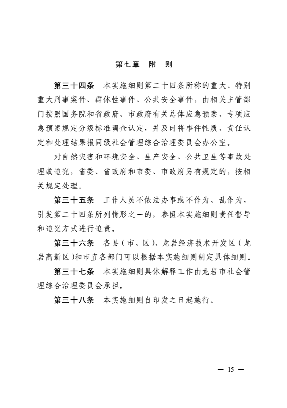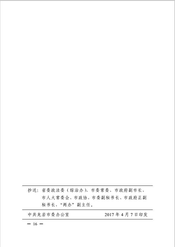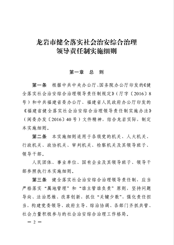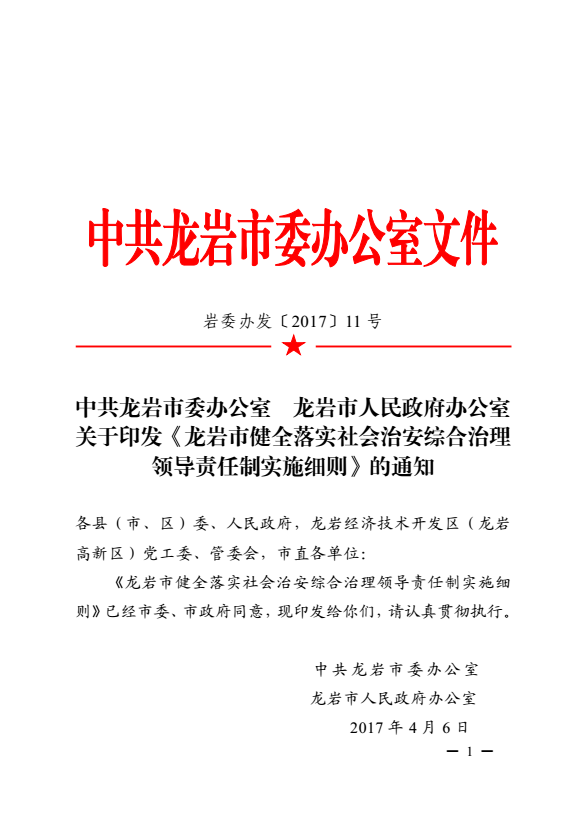 龍巖市健全落實社會治安綜合治理領(lǐng)導(dǎo)責任制實施細則(巖委辦發(fā)【2017】11號)