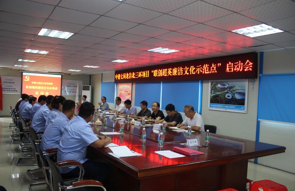 為進(jìn)一步加強(qiáng)項(xiàng)目黨風(fēng)廉政建設(shè)和反腐敗工作,7月18日下午,市城投公司聯(lián)合中建七局南方公司紀(jì)委、福州成建工程監(jiān)理有限公司共同在龍巖北三環(huán)項(xiàng)目召開聯(lián)創(chuàng)“超英廉潔文化示范點(diǎn)”啟動(dòng)會。
