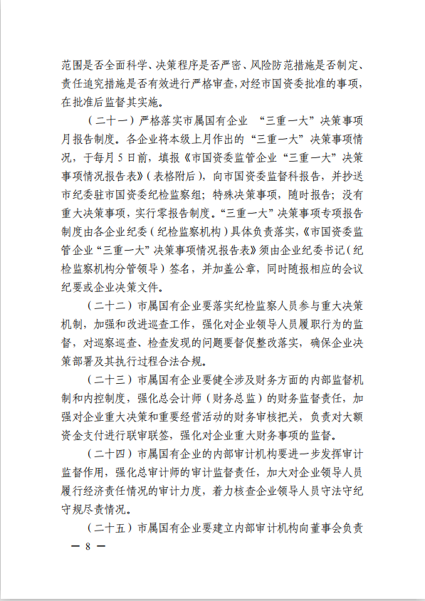 關于進一步規(guī)范市屬國有企業(yè)貫徹落實“三重一大”決策制度實施意見(國資黨委[2020]21號)