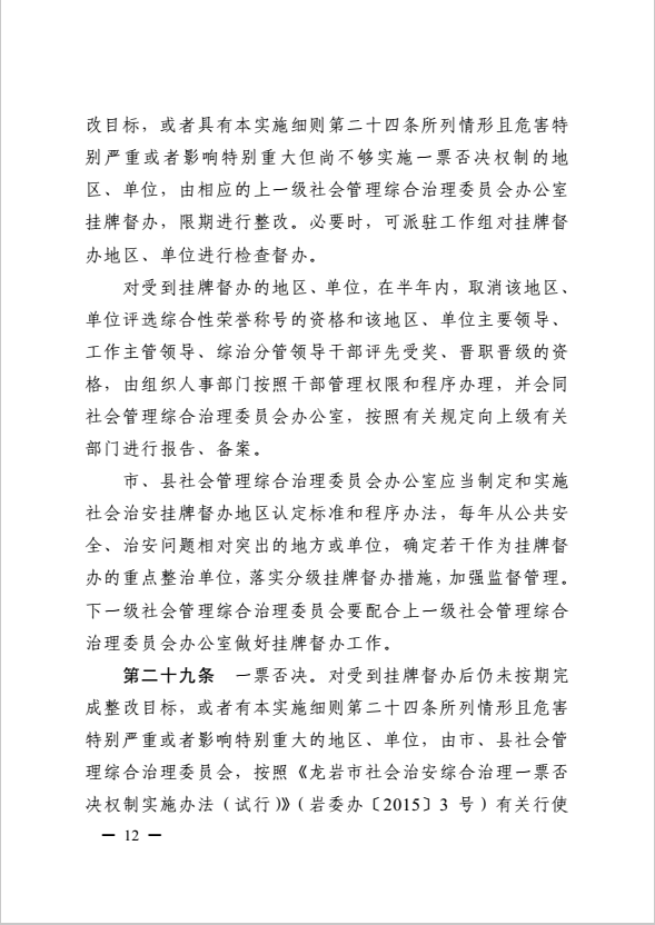 龍巖市健全落實社會治安綜合治理領(lǐng)導(dǎo)責任制實施細則(巖委辦發(fā)【2017】11號)